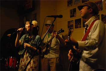 4.風景〜けしき〜 (作詞:栞、作曲:くりっち) しぃさんのまさかの坂道発信秘話のMCの後のバラード(笑) とにかく全てが小さい、miniのフロントガラスから見える景色をこれからもたくさん見つけたい。 そんな思いを歌ってます。まさに「次はふた昔♪」 ![]() 5.Mini, My Love (作詞&作曲:くりっち) miniの歌、第二弾!通称「ミニミニの歌」。 しぃちゃん曲紹介では噛んでたけどw、歌はうまくいったみたいね。 皆さんの手拍子がとっても励みになりました。ありがとう! ![]() 6.パーティー (作詞&作曲:くりっち) 1月のアンオフィシャルライブで初披露して以来のリベンジです。 前回はちょっと舞い上がってしまった点を修正して、今回は比較的落ち着いてできたと思います。 案外みんなも付き合ってくださって、間奏の掛け合いも楽しめました。 ありがとう、お前らサイコーw! 「上手くはない、そのギターも」の図↓ ![]() 7.予感(Featuring Mr.おぉにし) (作詞&作曲:くりっち) 栞ライブゲスト第三弾! 今回は、おぉにしさんにベーシストとしてお付き合いいただきました。 栞の曲を僕のギター以外でメロディー系楽器と合わせるのは初めてだったので、かなり新鮮でした。 ちょっと詰める時間が足りなかったかなと反省してみたり。。。 でも、いいセッションができたと思います。 ![]() 8.sachi(Featuring Mr.おぉにし) (作詞&作曲:くりっち) 今回は持ち時間の45分をフルに使わせていただいて、8曲演奏でした。 過去最多曲数やね。 最後もおぉにしさんにベースを弾いていただいてプレイ。 この曲はややブルースに近いコード進行のためか、おぉにしさんのランニングベースがとてもはまっててカッコ良かったゾと。 セッション参加 ![]() 冨井誠司とTokyo eastside kingsさんの トミーB Goodに、栞二人参加させていただきました。 ブルースって滅多にプレイすることがないので、とてもエキサイティングでした。 久しぶりにギターソロを単音で弾きました(笑) 日時:2011年4月22日(金曜日)20:00〜22:00 場所:武蔵小山アゲイン 出演アーティスト(出演順): 1.栞 2.冨井誠司とTokyo eastside kings |
